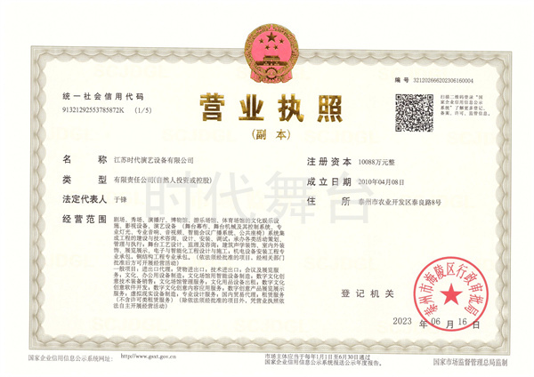 江蘇時代演藝設(shè)備有限公司(以下簡稱“時代舞臺”)總部基地位于梅蘭芳故鄉(xiāng)——江蘇泰州,企業(yè)創(chuàng)建于80年代初期,擁有40多年舞臺設(shè)備設(shè)計和制造經(jīng)驗,配置現(xiàn)代化大型舞臺設(shè)備加工基地。公司下設(shè)以高級工程師為骨干,舞臺機(jī)械、電氣控制、燈光音響、音視頻、聲學(xué)設(shè)計、聲學(xué)裝飾等專業(yè)技術(shù)人員為核心的上海、北京、武漢分公司。