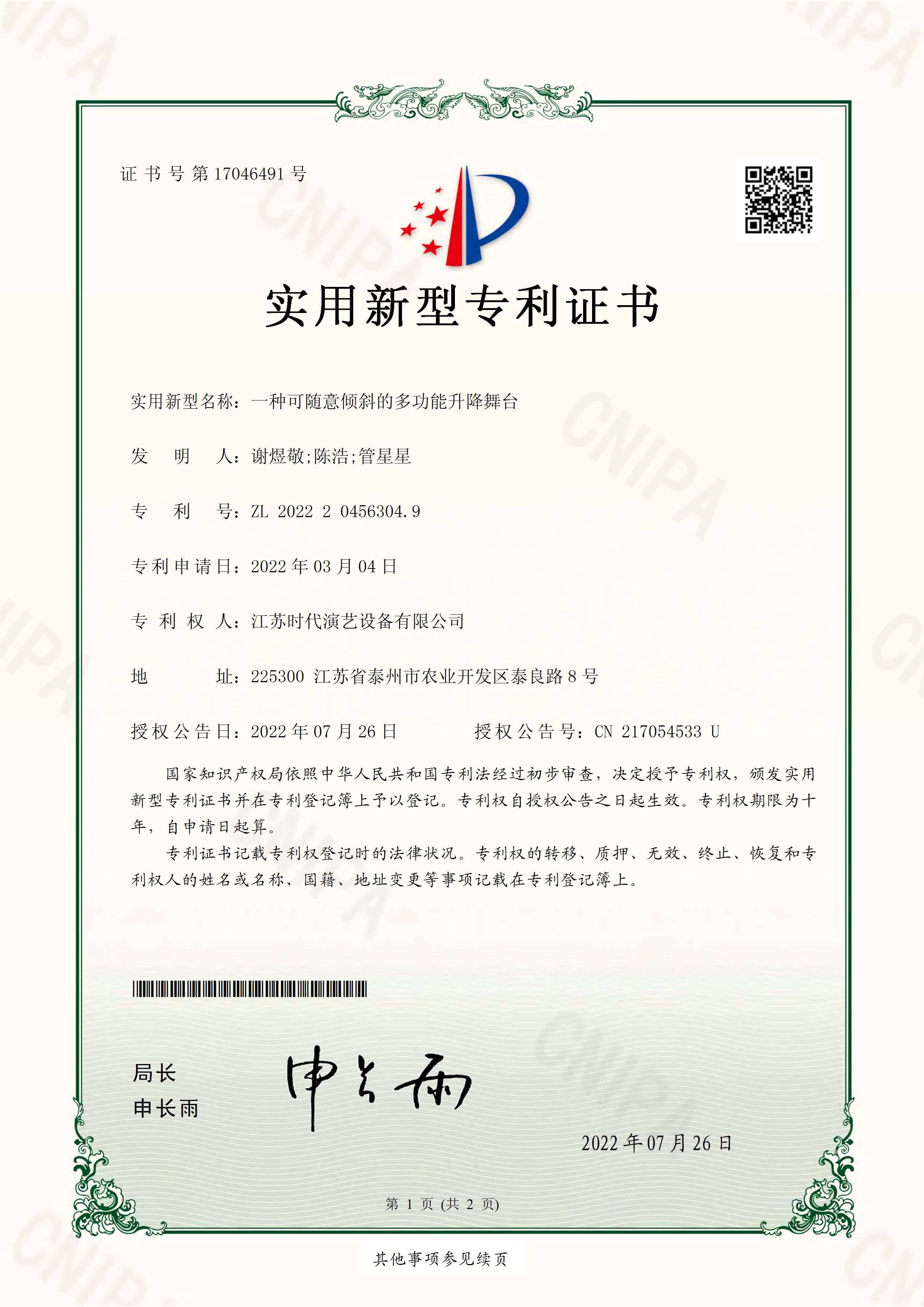 實用新型-一種可隨意傾斜的多功能升降舞臺